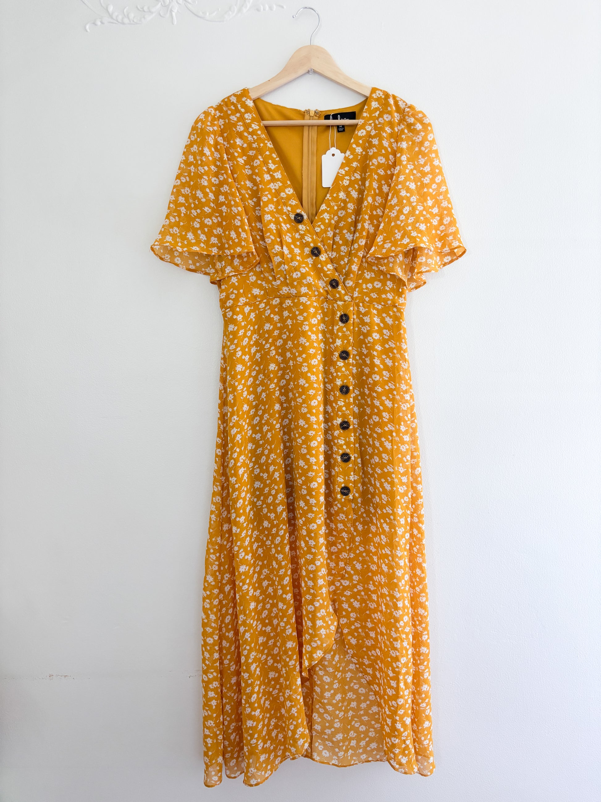 LuLus floral yellow dress (M)