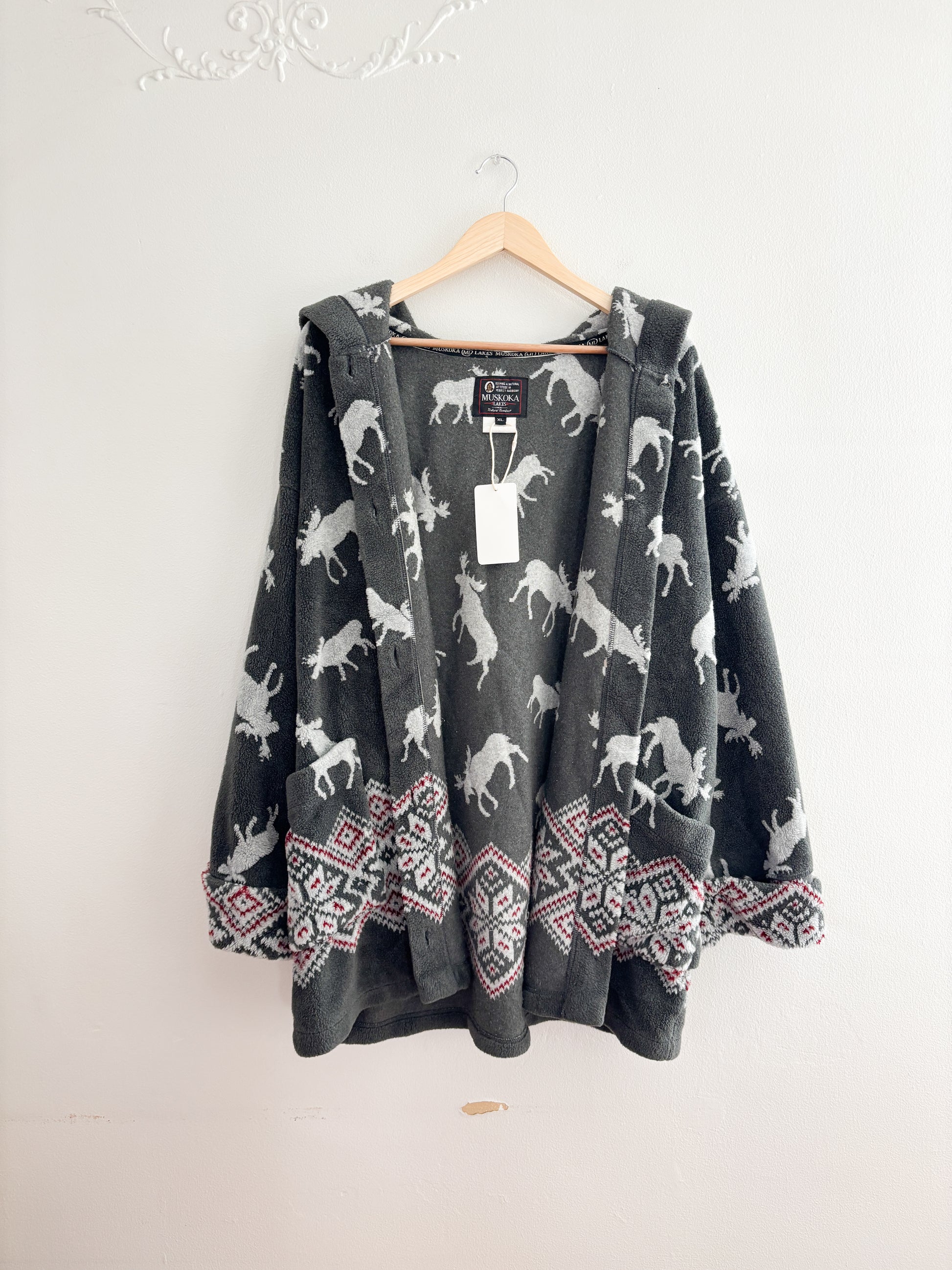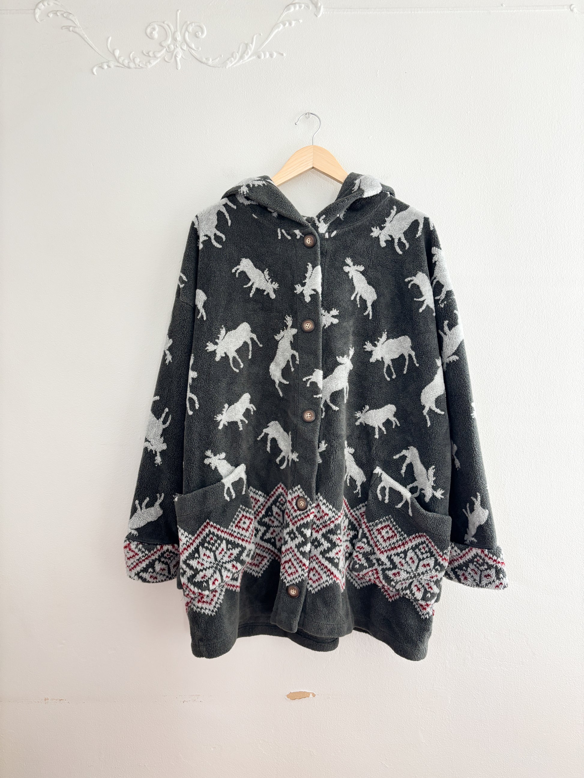 Vintage Moose Fleece Hoodie (XL)